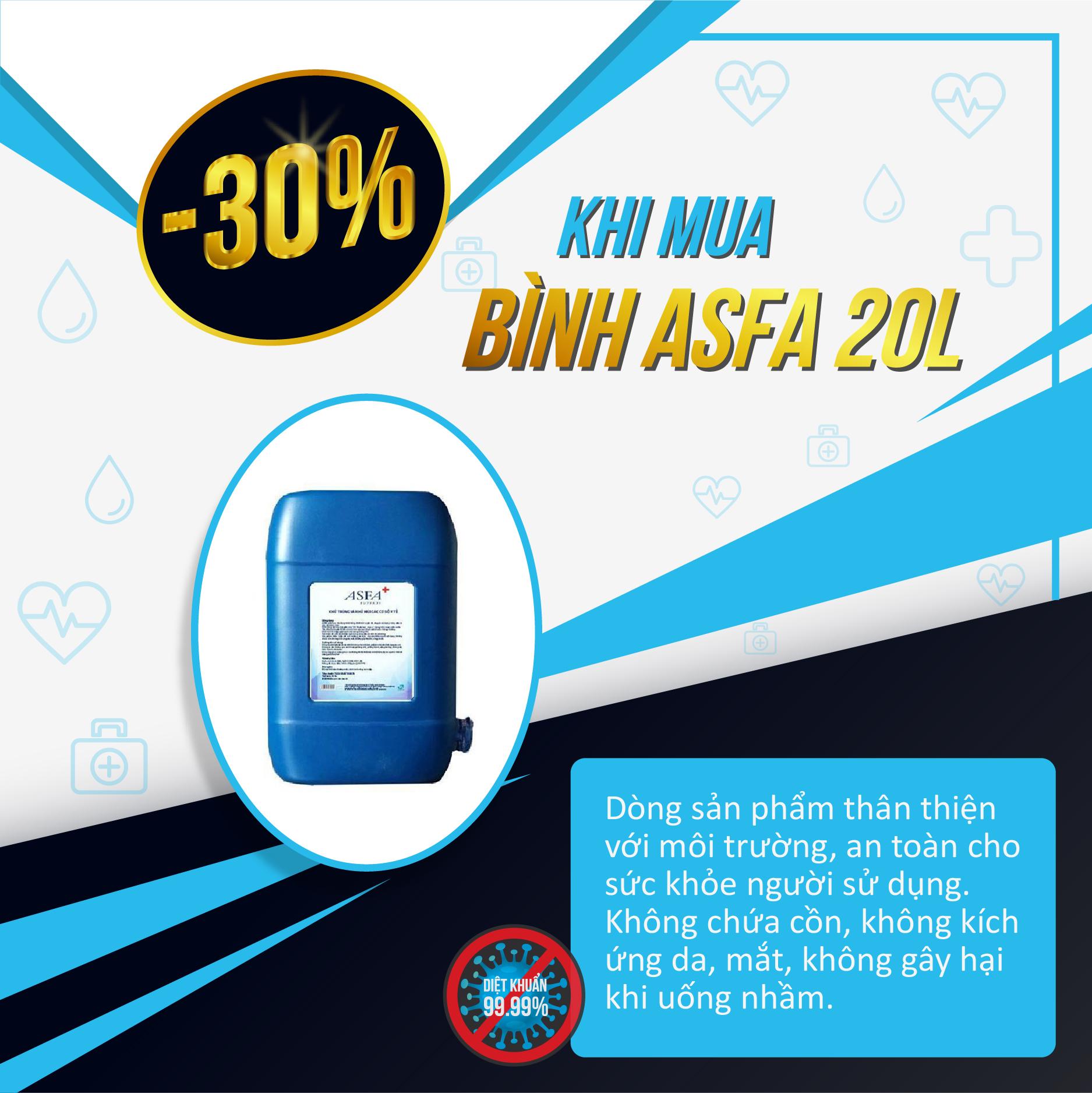 Nhằm hỗ trợ quý khách hàng yên tâm sử dụng nước diệt khuẩn ASFA sau khi hết thời gian cách ly xã hội mà không cần lo về giá. Chúng tôi đưa ra chương trình khuyến mãi lớn chưa từng có :