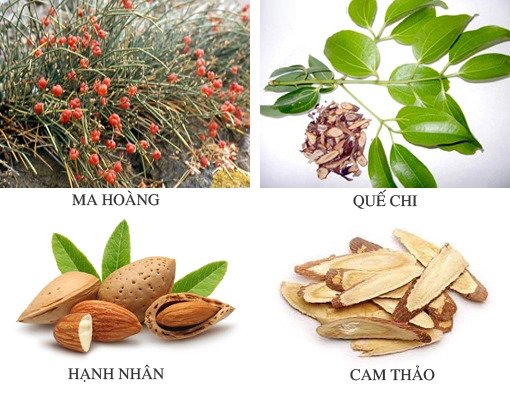 Thành phần bao gồm: Ma hoàng 9g, quế chi 6g, hạnh nhân 9g, cam thảo nướng 3g.